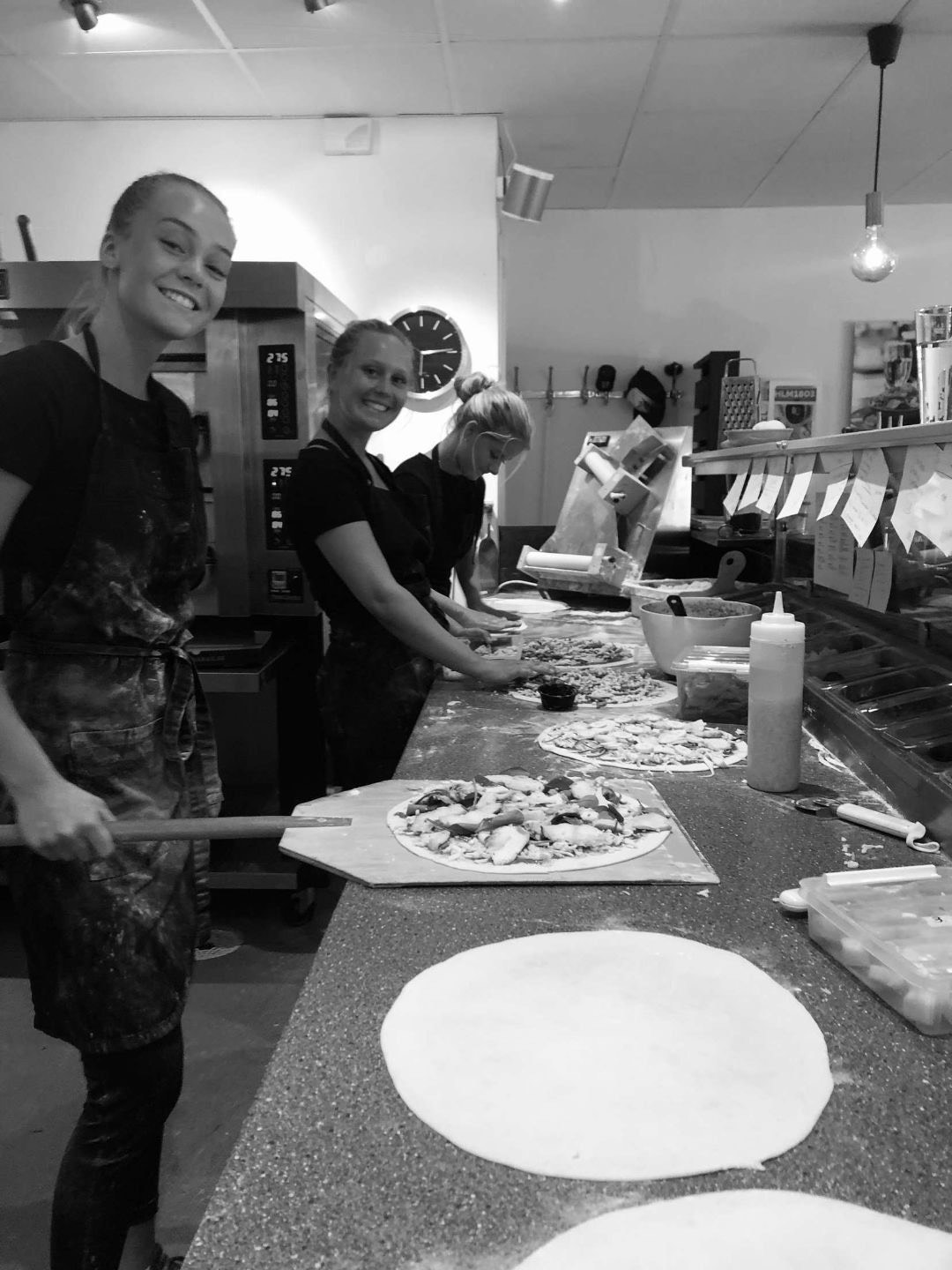 Till skillnad från vår egna pizzadeg som vi gör själva så köper vi in den glutenfria degen. Den förgräddas i ugnen i sin folieform, sen toppas den i köket med tomatsås, ost, och sen med dina önskemål. Sen in i ugnen igen för att färdiggräddas. Allt detta för bästa resultat!